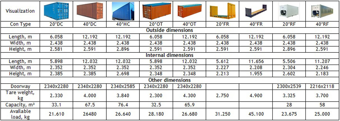 - Масса и размеры груза. Существуют ограничения на массу и размеры груза, которые может вместить контейнер. Большинство стандартных сухогрузных контейнеров имеют длину 20 или 40 футов и могут вместить определенное количество груза. Крупногабаритные или тяжелые грузы могут потребовать использования открытых или платформенных контейнеров.
